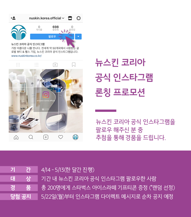 | 제목 | 뉴스킨 코리아 공식 인스타그램 론칭 및 프로모션 안내 |
