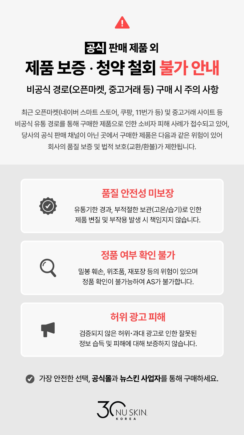 제목 비공식 유통 경로를 통한 제품 보증, 청약 철회 제한 안내