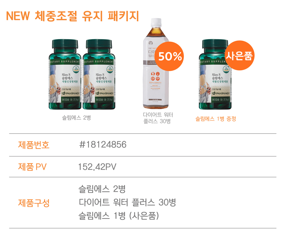 NEW 체중조절 유지 패키지 구매 시 티알에이 슬림에스 1병을 사은품으로 제공하고 있습니다.